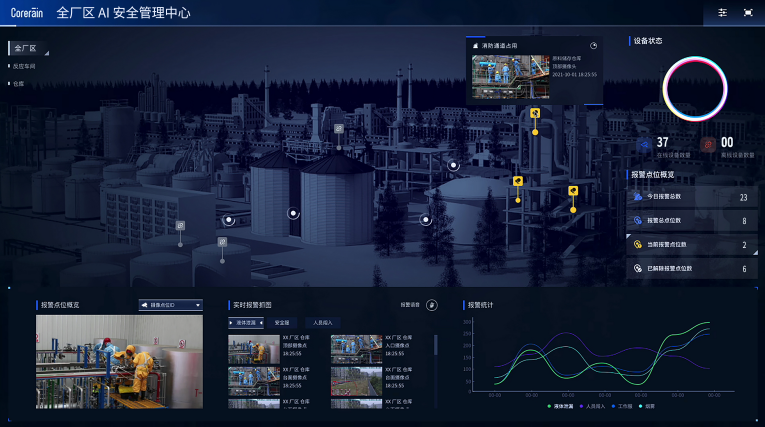 當(dāng)前化工企業(yè)和化工園區(qū)存在安全發(fā)展理念落實(shí)不到位、重發(fā)展輕安全的運(yùn)營理念、從業(yè)人員安全水平低、安全風(fēng)險(xiǎn)防控措施差,導(dǎo)致化工事故多發(fā)難以避免。為了危險(xiǎn)化學(xué)品重特大事故得到有效遏制,從根源上解決安全隱患,國家應(yīng)急管理部印發(fā)了 《“十四五”危險(xiǎn)化學(xué)品安全生產(chǎn)規(guī)劃方案》、《化工園區(qū)安全風(fēng)險(xiǎn)智能化管控平臺(tái)建設(shè)指南(試行)》和《危險(xiǎn)化學(xué)品企業(yè)安全風(fēng)險(xiǎn)智能化管控平臺(tái)建設(shè)指南(試行)》。各地方政府為貫徹國家指導(dǎo)思想也接連出臺(tái)相關(guān)政策。針對化工隱患排查治理,明確強(qiáng)調(diào)化工企業(yè)和化工園區(qū)建設(shè)化工園區(qū)安全風(fēng)險(xiǎn)智能化管控平臺(tái),指出利用視頻分析技術(shù),實(shí)現(xiàn)火災(zāi)、煙霧、物料泄漏、人員違章(中控室脫崗)等進(jìn)行全方位的識(shí)別和預(yù)警。