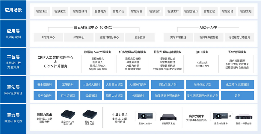 鯤云視頻智能分析系統(tǒng)已經廣泛應用于各種場合,在化工、加油站、油田、礦山、糧庫、工地、港口等多個行業(yè)落地。鯤云致力于為客戶提供AI視頻分析服務,成功幫助1000+企業(yè)智能化升級,實現更加精準和高效的管理和預警,從而保障人員的安全和提高企業(yè)的管理效率。