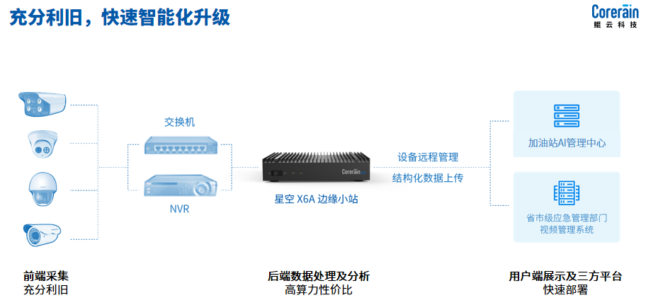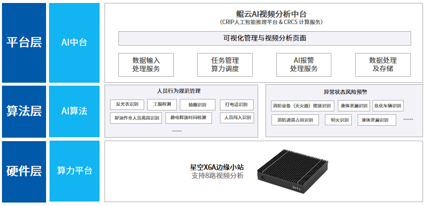 鯤云科技為加油站提供算力算法平臺(tái)一體化智慧加油站解決方案,通過(guò)應(yīng)用AI視頻分析技術(shù),對(duì)加油區(qū)和卸油區(qū)內(nèi)人員抽煙、打電話等違規(guī)行為,明火和煙霧等異常狀態(tài),卸油作業(yè)時(shí)人員離崗、滅火器未正確擺放、靜電釋放時(shí)間不足等不規(guī)范情形進(jìn)行智能識(shí)別、報(bào)警和記錄,智慧加油站系統(tǒng)實(shí)現(xiàn)區(qū)域內(nèi)事前自動(dòng)報(bào)警,報(bào)警數(shù)據(jù)為監(jiān)管部門精準(zhǔn)施策提供依據(jù),助力加油站安全穩(wěn)定運(yùn)行。