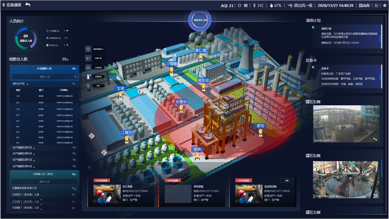 精確顯示生產(chǎn)區(qū)域內(nèi)在線人員、車輛實時動態(tài),跟蹤人員、車輛的位置和行為。第一時間掌握企業(yè)應(yīng)急狀態(tài)時涉險人員情況,提高應(yīng)急救援效率。