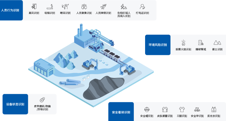 智慧礦山建設(shè)是礦山安全管理必經(jīng)之路,為推進(jìn)AI智慧礦山建設(shè),鯤云科技推出了包含深入行業(yè)場景的AI算法、自主研發(fā)的AI算力產(chǎn)品和視頻分析平臺(tái)的智慧礦山管理系統(tǒng)。利用充分利舊的原則,將視頻分析設(shè)備與礦山井上井下各場景使用的攝像頭相連通過AI智能分析技術(shù)對攝像頭采集的視頻數(shù)據(jù)進(jìn)行識(shí)別,識(shí)別分析視頻中的三違作業(yè)、主煤流運(yùn)輸系統(tǒng)、輔助運(yùn)輸系統(tǒng)中的異常風(fēng)險(xiǎn),實(shí)時(shí)對地面和井下關(guān)鍵點(diǎn)位進(jìn)行監(jiān)測預(yù)警,助力礦業(yè)企業(yè)向智能化礦山轉(zhuǎn)型升級。