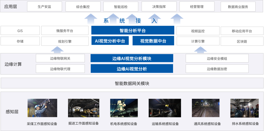 礦山業(yè)務(wù)場(chǎng)景復(fù)雜,其安全管理對(duì)風(fēng)險(xiǎn)和隱患發(fā)現(xiàn)的及時(shí)性、穩(wěn)定性要求較高,人工智能是否能真正落地取決于在實(shí)際業(yè)務(wù)場(chǎng)景下算法模型是否具有較高的場(chǎng)景成熟度。集團(tuán)、企業(yè)、礦井的管理職責(zé)不同,需要能滿足不同需求的行業(yè)解決方案,鯤云科技推出算力、算法、平臺(tái)一體化的礦山 AI 視頻分析解決方案,覆蓋露天礦山、井工礦山全場(chǎng)景智能化視頻分析需求。