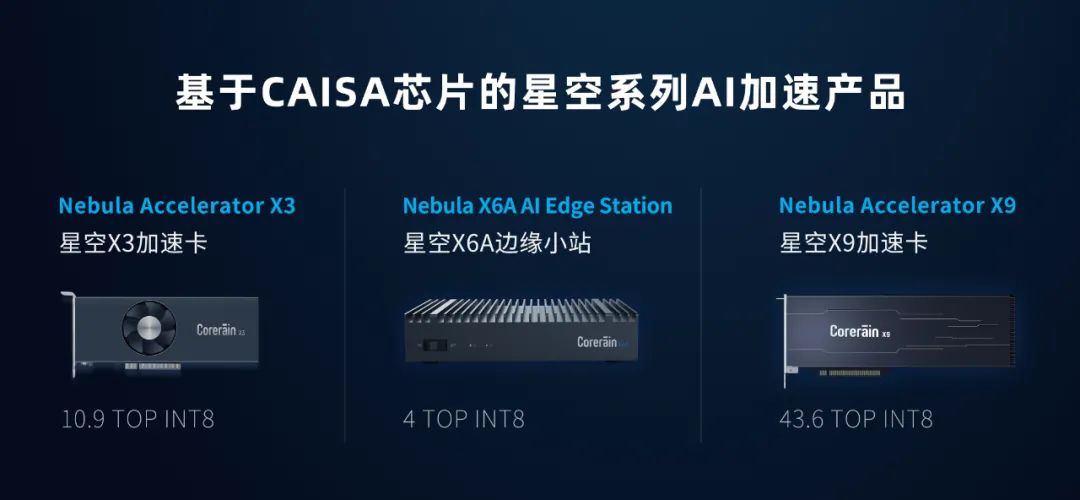 基于CAISA芯片的技術優(yōu)勢,鯤云科技提供高性能、低延時、高算力性價比的人工智能計算加速解決方案,與多個行業(yè)龍頭企業(yè)達成戰(zhàn)略合作,滿足不同場景的人工智能計算需求。搭載CAISA芯片的星空X3加速卡、星空X6A邊緣小站、星空X9加速卡等在智能制造、智慧能源等多個領域實現(xiàn)規(guī)模落地。