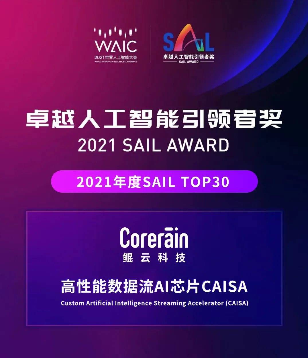 6月8日,世界人工智能大會組委會公布最高獎項2021SAIL獎入選名單,鯤云科技參評項目—高性能數(shù)據(jù)流AI芯片CAISA,憑借領先的技術優(yōu)勢和場景化落地能力,成功入選卓越人工智能引領者TOP30。同時入選的還有眾多海內外優(yōu)秀項目,包括華為、百度、阿里、京東、GE等頭部企業(yè),以及中科院、清華大學、上海交通大學、同濟大學、利物浦大學、滑鐵盧大學等國內外學術科研機構。