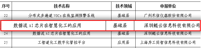 3月29日,在“2023中國化工園區(qū)可持續(xù)發(fā)展大會”上,中國石油和化學(xué)工業(yè)聯(lián)合會正式發(fā)布“智慧化工園區(qū)適用技術(shù)目錄”,鯤云科技的“數(shù)據(jù)流AI芯片在智慧化工的應(yīng)用案例”成功入選。