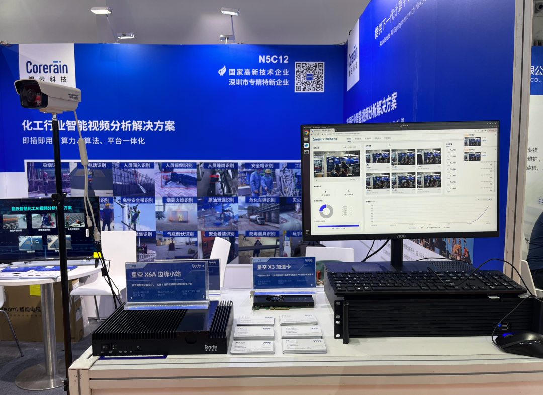 鯤云科技攜算力、算法、平臺一體化的 AI 視頻分析方案亮相智能制造聯(lián)合展示區(qū),該方案旨在利用人工智能技術(shù),為化工企業(yè)安全生產(chǎn)提供高效的智能化支持。客戶在現(xiàn)場體驗了包括安全帽識別、抽煙識別、打電話識別等人工智能算法的實時檢測效果。