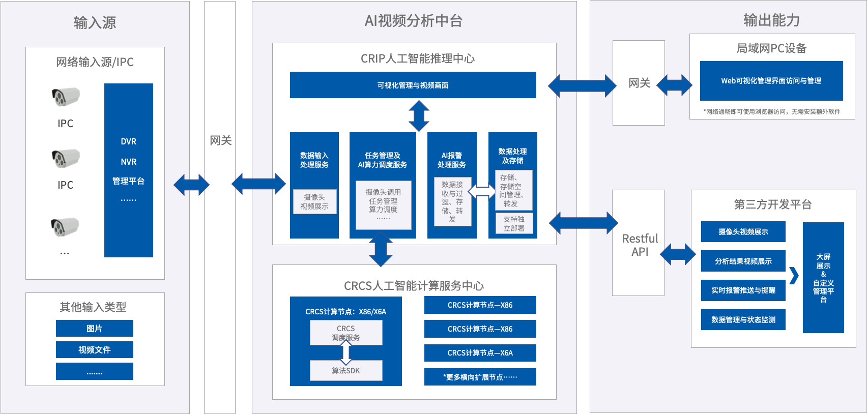鯤云科技提供功能完備的 AI 視頻分析平臺,平臺支持多種流媒體服務平臺接入,通過 AI 計算集群實現(xiàn)現(xiàn)場秒級預警、智能管控、實時取證,分析數(shù)據(jù)在安全管理中心有多元的可視化呈現(xiàn),且開放靈活,可與第三方平臺無縫銜接,滿足客戶不同場景應用需求。