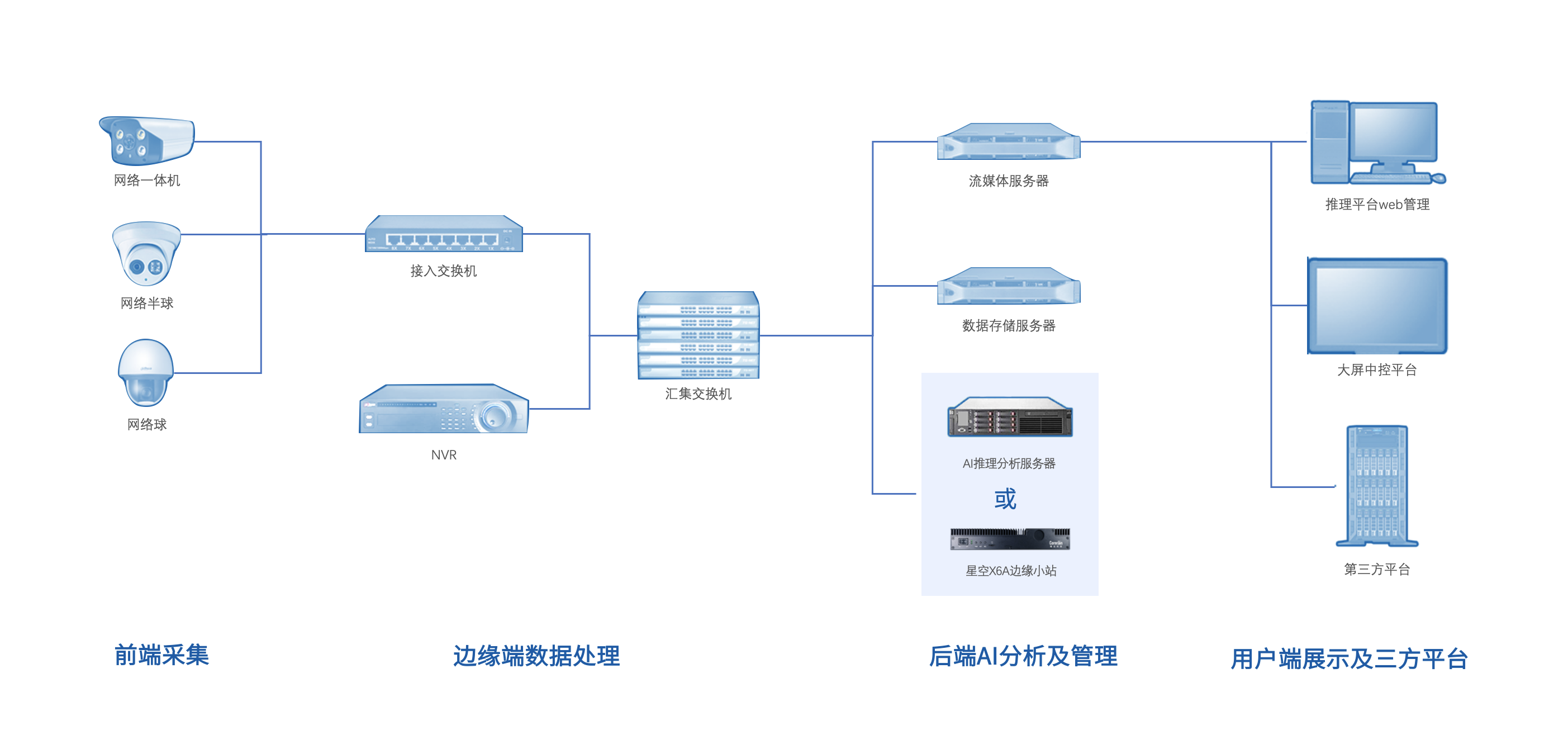 方案充分利舊,可利用制酒車間、制曲車間、磨曲車間、酒庫、灌裝區(qū)等場所原有的攝像頭,將接入攝像頭視頻流的智能分析服務器部署在中控室內(nèi),使用 AI 視覺分析算法對視頻內(nèi)現(xiàn)場人員行為及環(huán)境進行實時監(jiān)測,實現(xiàn)一屏看全場、一鍵治違規(guī),快速打造一體化安全生產(chǎn)管控平臺。
